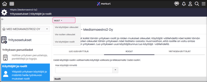 | Vie käyttäjien roolit | → Vie yrityksen käyttäjien roolit CSV-listaukseksi |