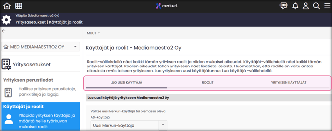 | YRITYKSEN KÄYTTÄJÄT | Tarkastele yrityksen käyttäjiä |