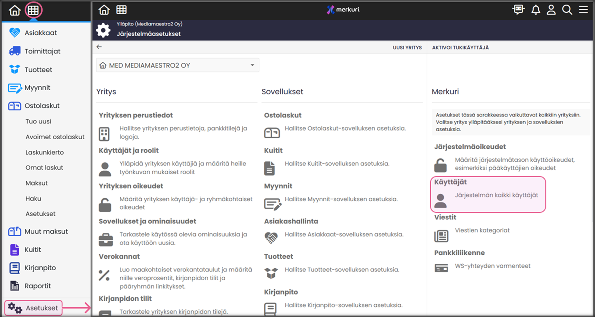 Valitse Asetukset → Käyttäjät