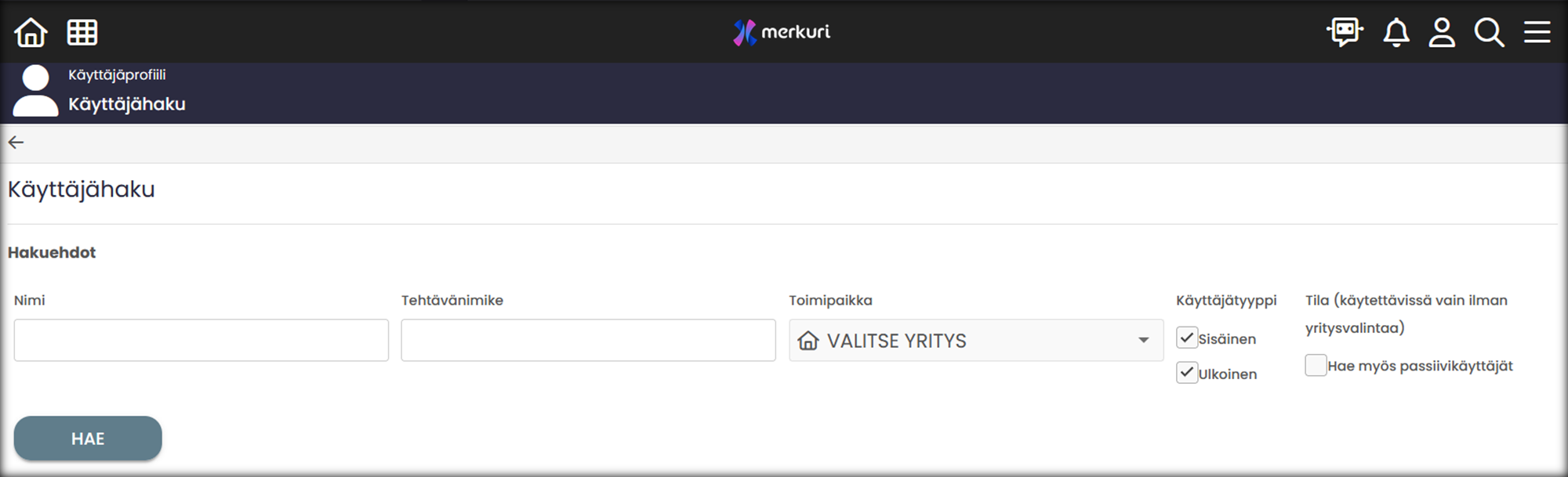 | Tehtävänimike | Hae käyttäjää tehtänimikkeen perusteella |