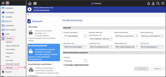 Kirjanpidon asetukset