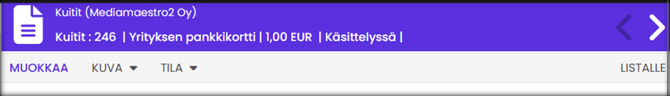 → kuitti siirtyy kuittiarkistoon, eikä sitä voi enää muokata.