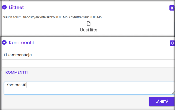 Liitteet – Lisää liitteitä (max. 10 Mt yhteensä) valitsemalla Uusi liite
