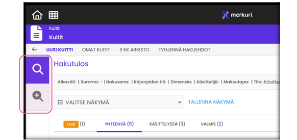 - Hae kuitteja nopeasti esimerkiksi hakusanoilla tai summarajauksella.