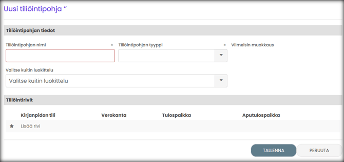 - Tiliöintirivit: Lisää kirjanpidon tilit