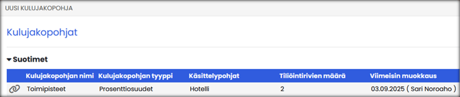 - Avaa muokattava kulujakopohja klikkaamalla kulujakopohjan nimeä
