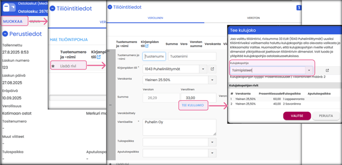 Kulujakopohjan käyttö ostolaskuilla