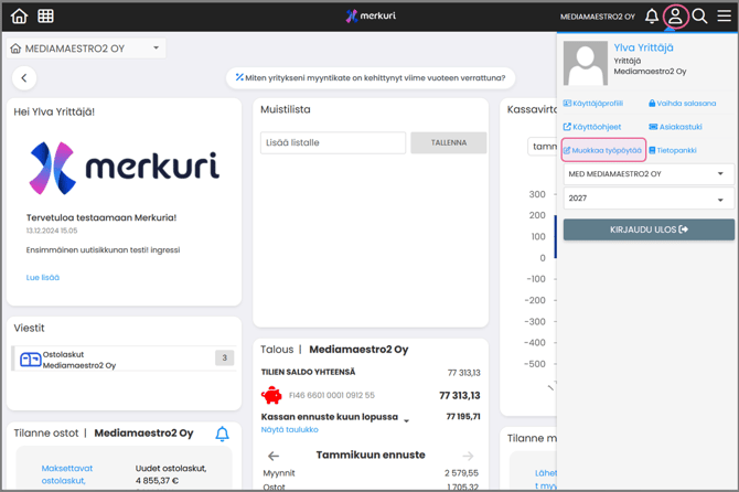 Merkurin etusivun muokkaaminen