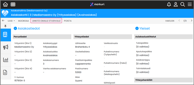 | Linkit | Lisää asiakaskortin avauslinkki |