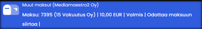 | Maksun tila | Maksun tila (Odottaa maksuun siirtoa / Maksettu) |