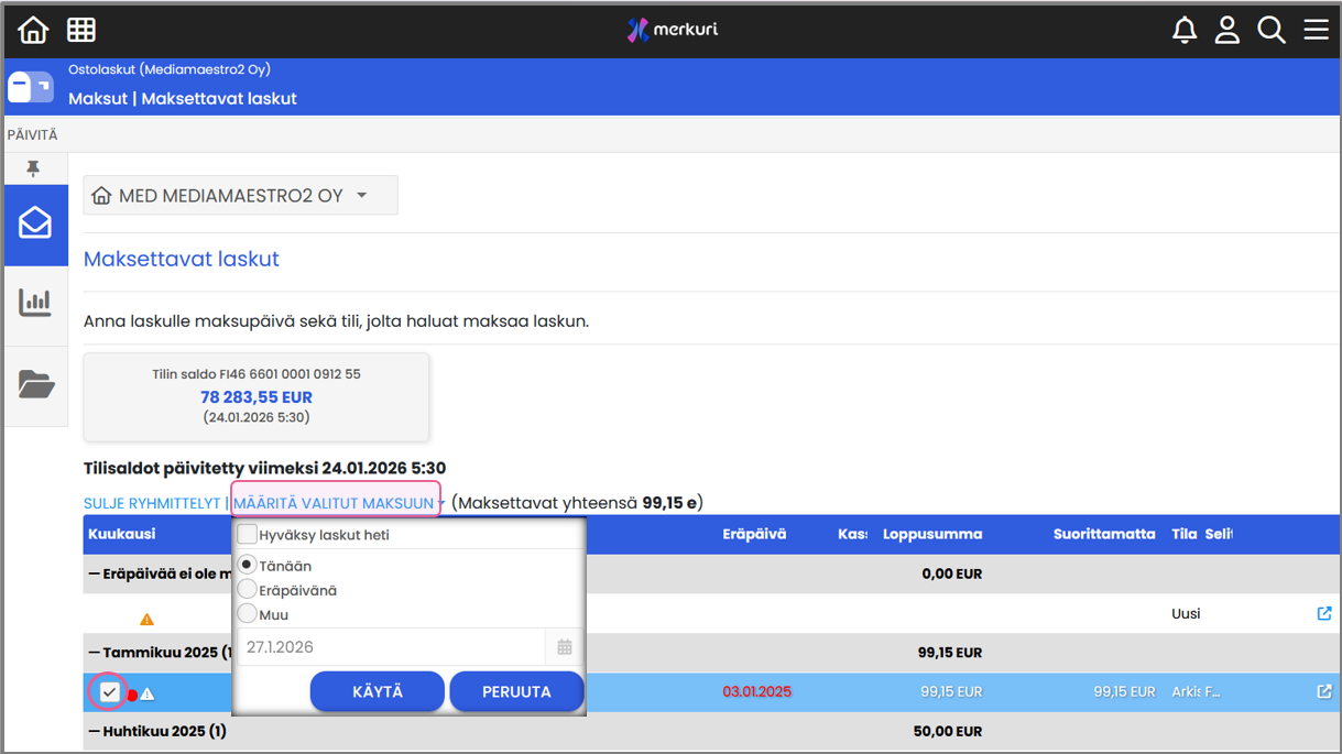 - Valitse MÄÄRITÄ VALITUT MAKSUUN.