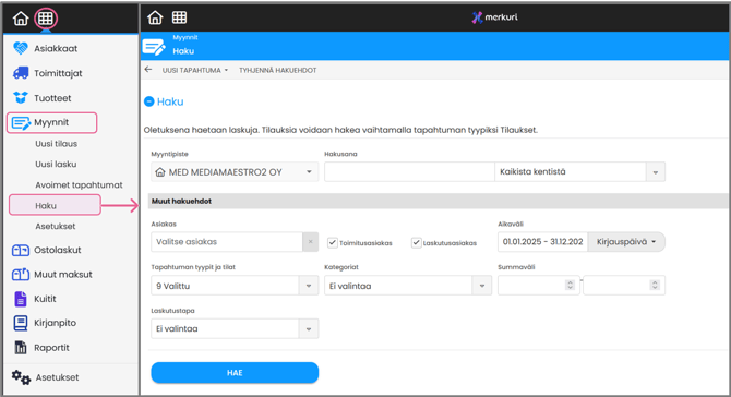 Valitse Myynnit → Haku