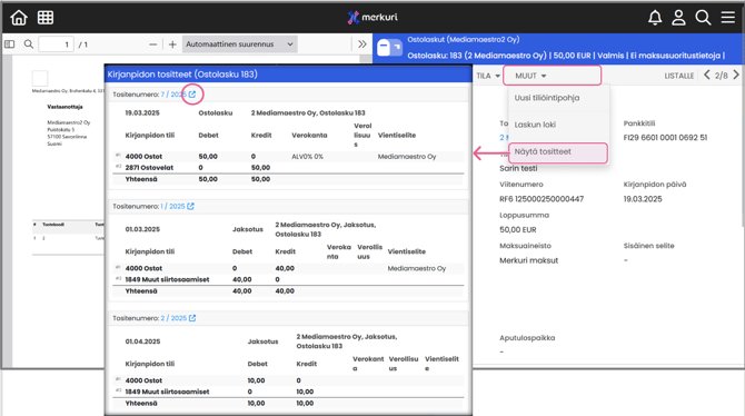 → Ostolaskuun liittyvä tosite tulee näkyviin.
