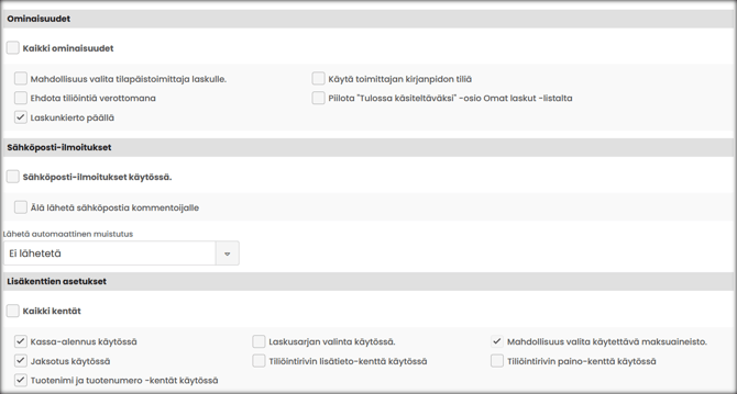 Valitse Ostolaskut → Asetukset →  Sovellusasetukset
