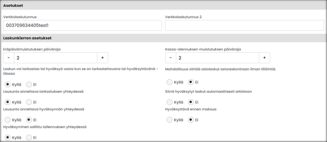 Mikäli käytössä on toinen verkkolaskuosoite, voit määrittää sen tähän kenttään.