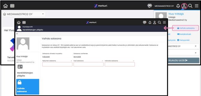 Kun olet kirjautunut sisään, vaihda salasana heti. Salasanan vaihtaminen on tärkeää tietoturvan vuoksi.