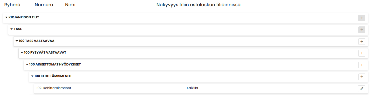 Voit myös lisätä tilikarttaan uuden tilin pluspainikkeen