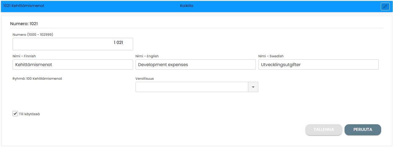 Yksittäistä tiliä pääset muokkaamaan klikkaamalla kynäpainikkeesta