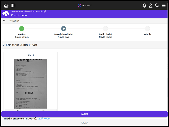 - Tuo kuitti sovellukseen PDF-tiedostona tai kuvana.