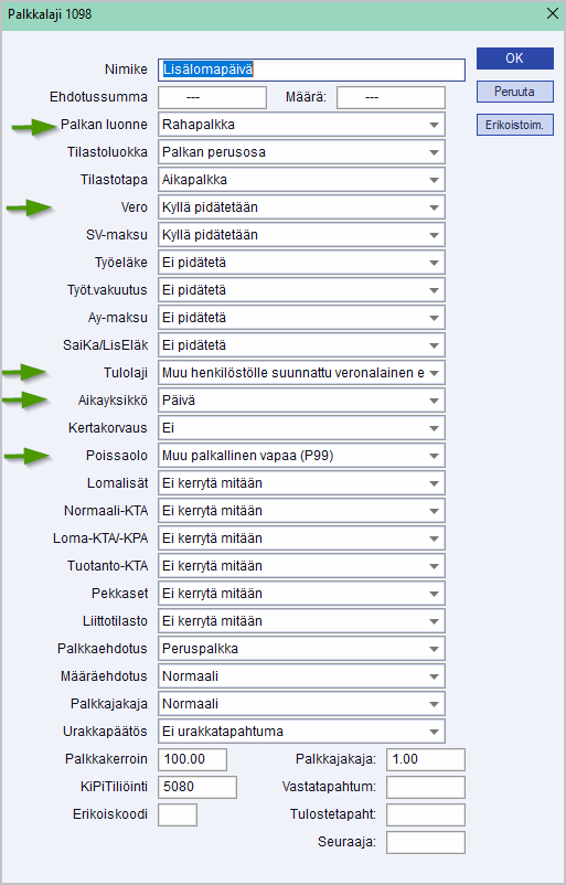 Lisävapaapäivä -palkkalaji määritellään esimerkiksi näin: