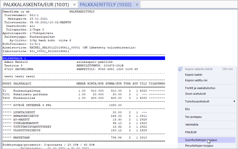 - alkuperäinen palkanmaksukausi (alla olevassa esimerkissä 01.01.2021 - 15.01.2021)