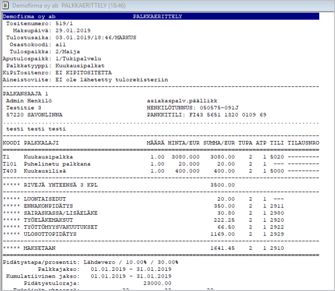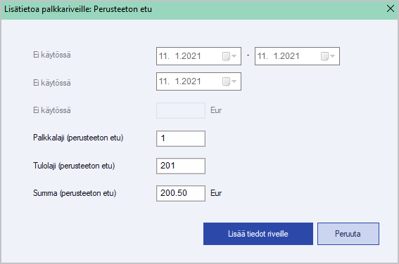 - tai !M Perusteeton etu: palkkalaji 1, tulolaji 201, summa 200.50e