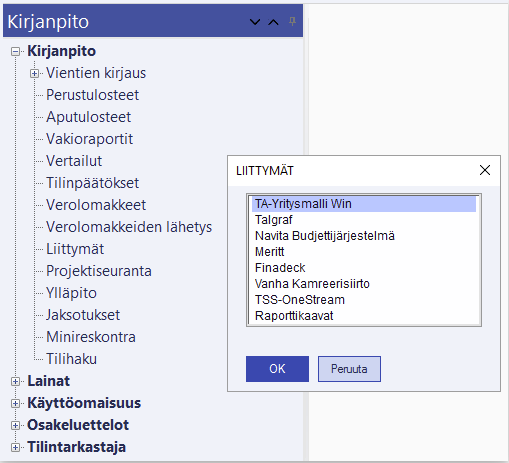 Valitse Kirjanpito/Liittymät.