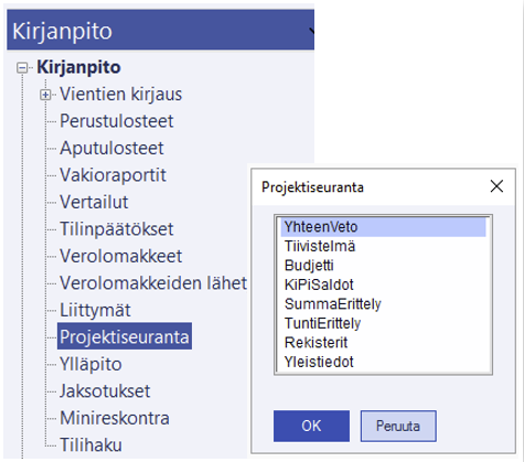 Tällä toiminnolla saadaan listattua halutut pääprojektit.