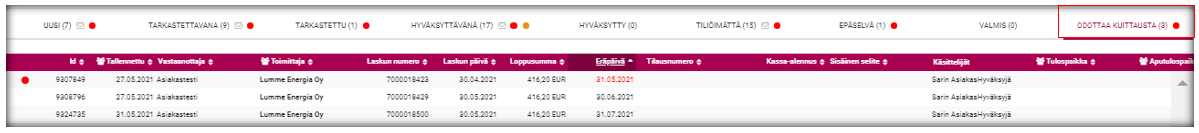 Laskut Odottaa kuittausta -välilehdellä
