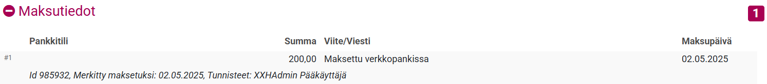 Maksetulla laskulla ja yksittäisellä maksusuorituksella näkyy