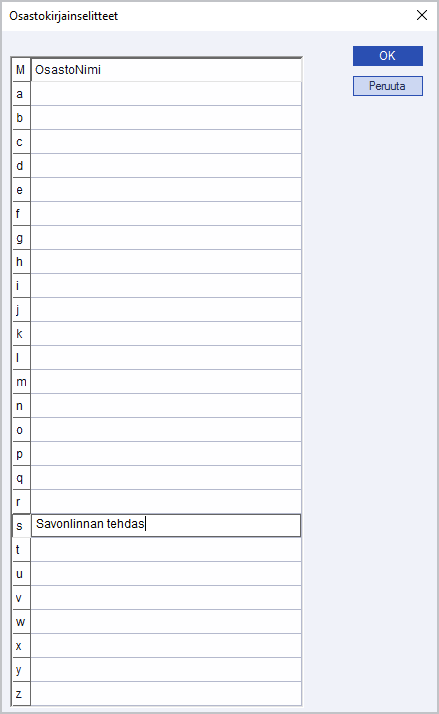 Ohje kertoo, miten järjestelmässä määritellään osastokirjainselitteet.