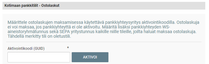 - Aktivoi pankkiyhteys leikepöydällä olevalla aktivointikoodilla