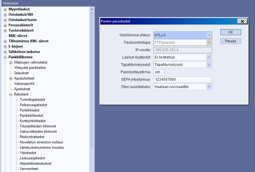 - Tilit, joilta maksetaan SEPA yritystunnuksineen