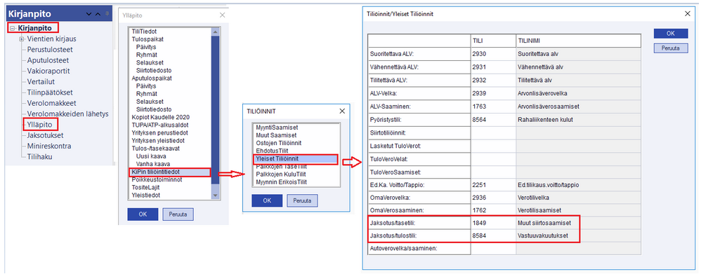 Kirjanpito - Ylläpito - Kipin tiliöintiedot - Yleiset Tiliöinnit