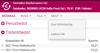 - Tunnisti toimittaja - toimittaja on tunnistettu joko y-tunnuksen tai pankkitilin perusteella