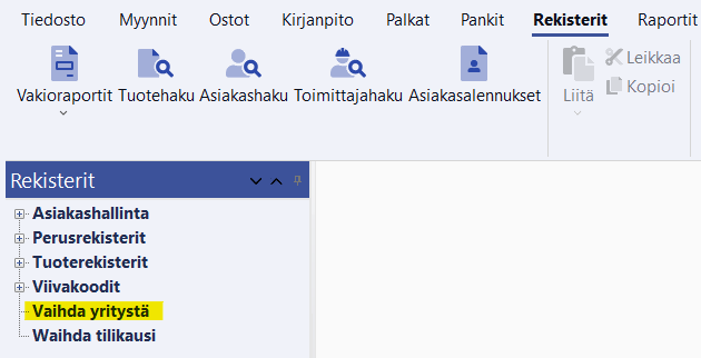 Yrityksiä saa siirrettyä passiivisiksi valitsemalla Maestron työkaluriviltä valinnan Rekisterit -