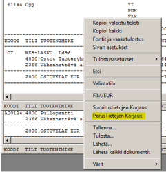 Klikataan laskulla hiiren oikealla -> avautuu valikko, josta valitaan "perustietojen korjaus"