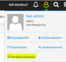 Valitse oikean yläkulman "ihmiskuvakkeesta" Muokkaa työpöytää