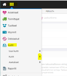 Klikkaa sovellusvalikosta haluamasi sovelluksen kohdalta "nasta-kuvakkeesta" (esim. Kuitit)