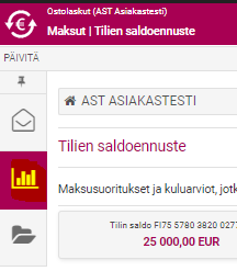 Kun laskulle syötetään maksutiedot, siirtyy lasku Tilien saldoennuste -välilehdelle odottamaan maksupäivää.