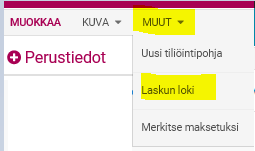 Lasku lokilta näkee tarkempia tietoja laskun maksutilanteesta.
