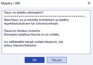 Myynnit > Myyntitilaukset > Tilausten kirjoitus > Tilausnumero > Maestro antaa ao. herjan