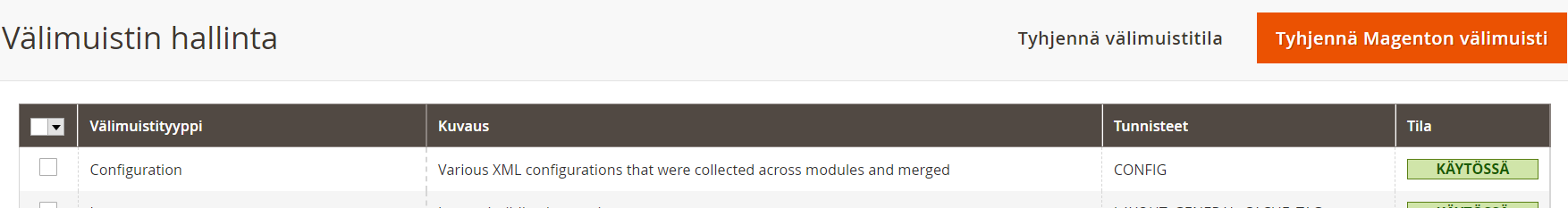 Välimuistit tyhjennetään oranssista Tyhjennä Magenton välimuisti - painikkeesta.