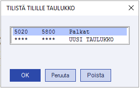 Tiliväliä voidaan pidentää tai tarvittaessa voidaan luoda uusi taulukko. Tämän jälkeen palkkojen kirjanpitosiirto käynnistetään uudelleen ja muodostetaan sivukululaskelma.
