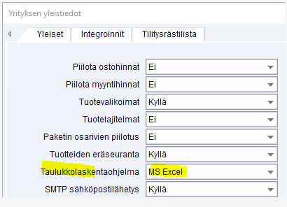 Rekisterit - Perusrekisterit - Yrityksen yleistiedot - Taulukkolaskentaohjelma
