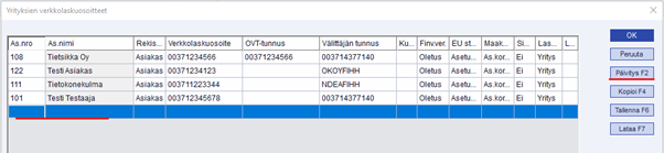 Sähköinen laskutus - Verkkolaskuosoitteet/yritykset kautta