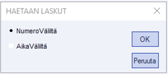Kun haluat lähettää vain yhden laskun valitse Haetaan laskut 'NumeroVäliltä'