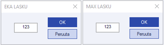 Kirjaa Eka lasku ja Max lasku ruutuihin sama kyseisen laskun numero - paina OK