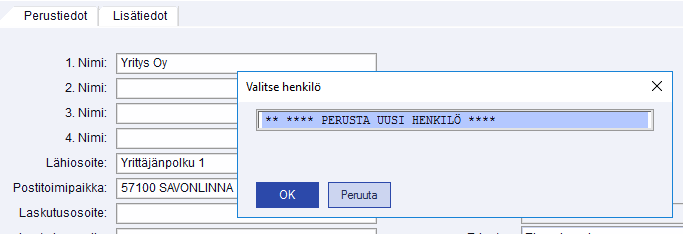 Uuden yhteyshenkilön perustaminen tapahtuu myös tätä kautta.