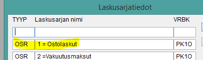 - ostojen laskusarjatiedoissa on oltava toisen rivin TYYP-kentässä OSR-teksti